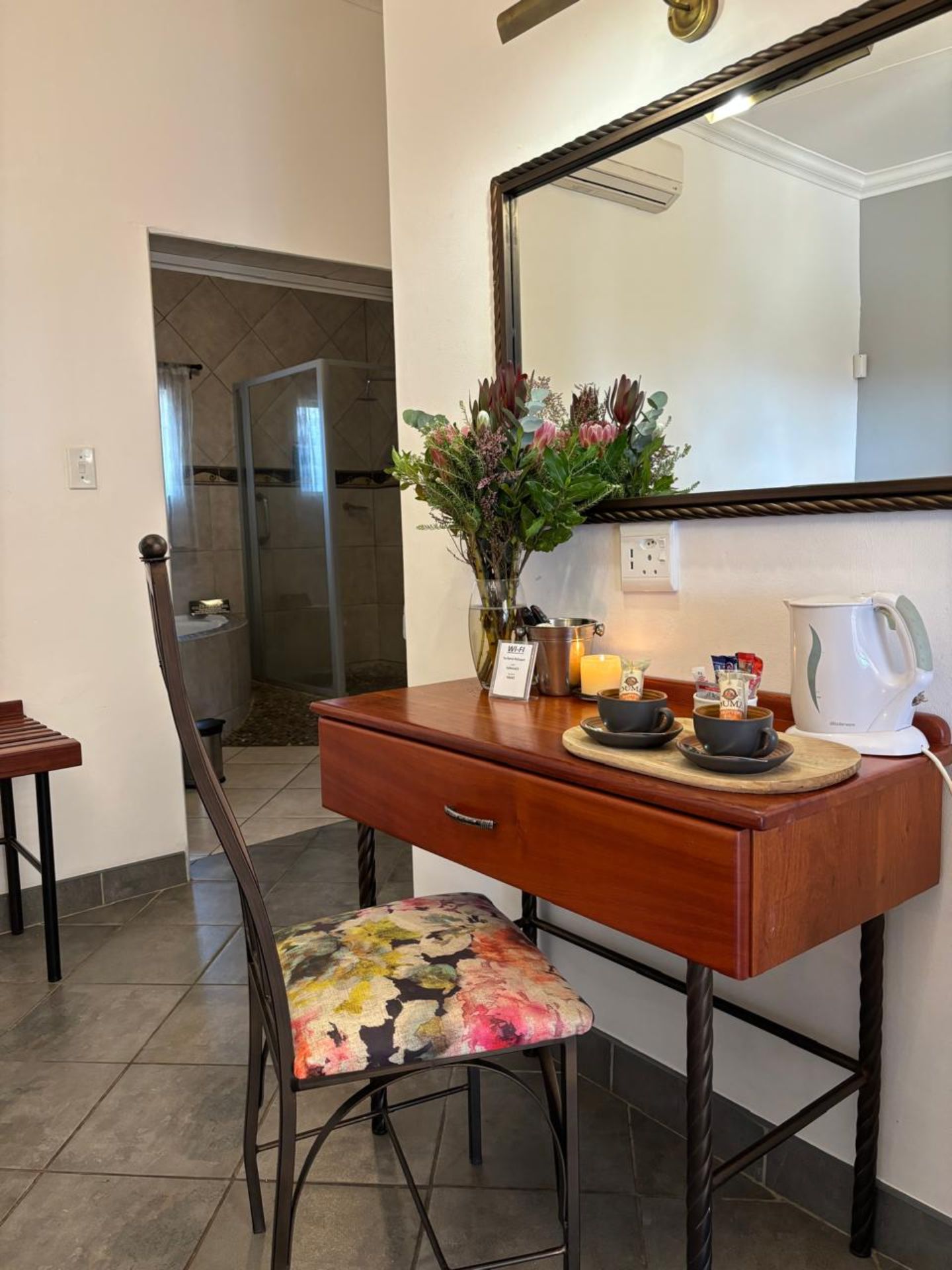 Eight luxury, en-suite, rooms are available. All the rooms have air conditioning, a bar fridge, coffee and tea facilities and DSTV. An electronic safe is available in each room for valuable items.